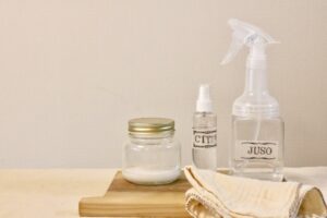 ・トイレのアンモニア臭などアルカリ性の汚れに対しては、酸性の「クエン酸スプレー」で中和して掃除する