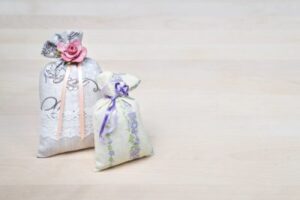 精油を3滴程度、厚めのコットンに染み込ませ、それを小さな封筒(お年玉袋や布袋など)に入れ、封を閉じ、サシェを作ります。精油が封筒に染みる場合があるため、コットンや封筒は慎重に選びましょう。リボンなどを使って可愛いサシェを作れば、インテリアにもなります。